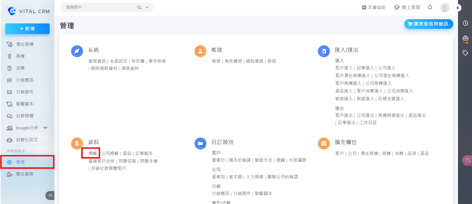 1. 請點選【管理>資料>標籤】功能進入操作頁面 。.png)