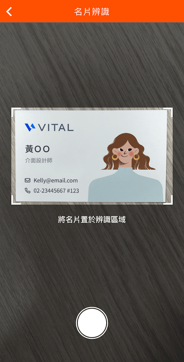 - 「拍照」即是原本的名片辨識拍攝功能,可以轉換直/橫向。