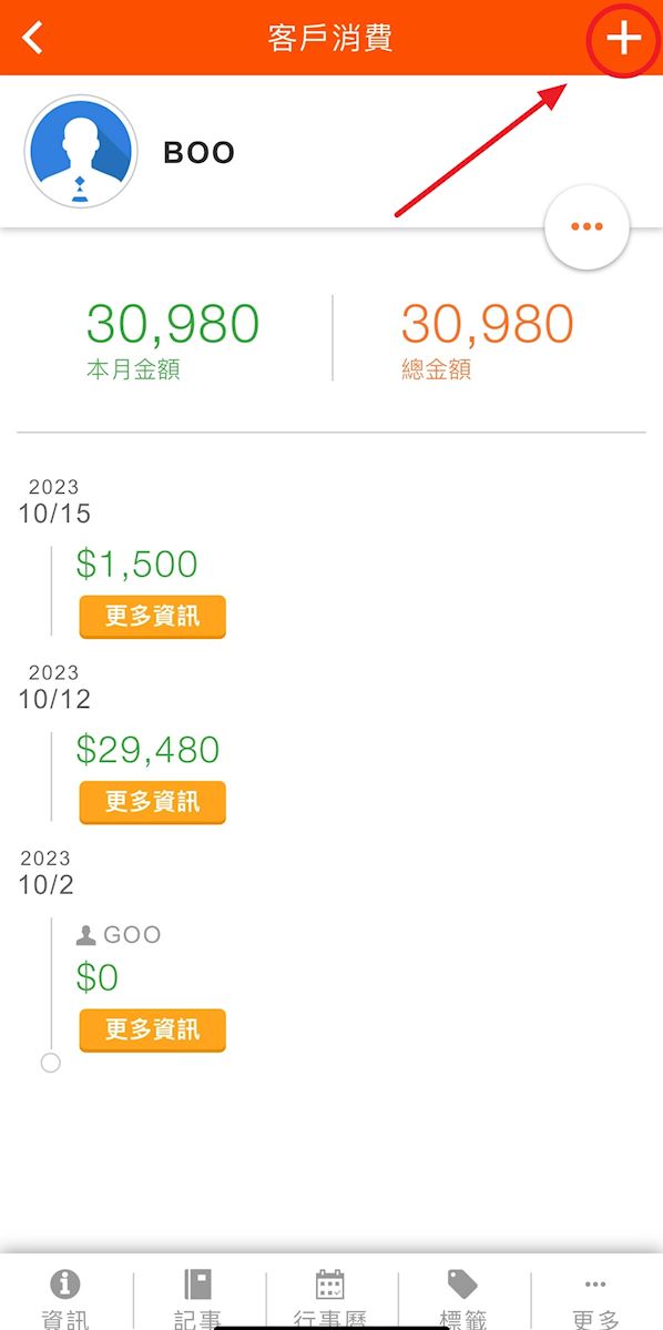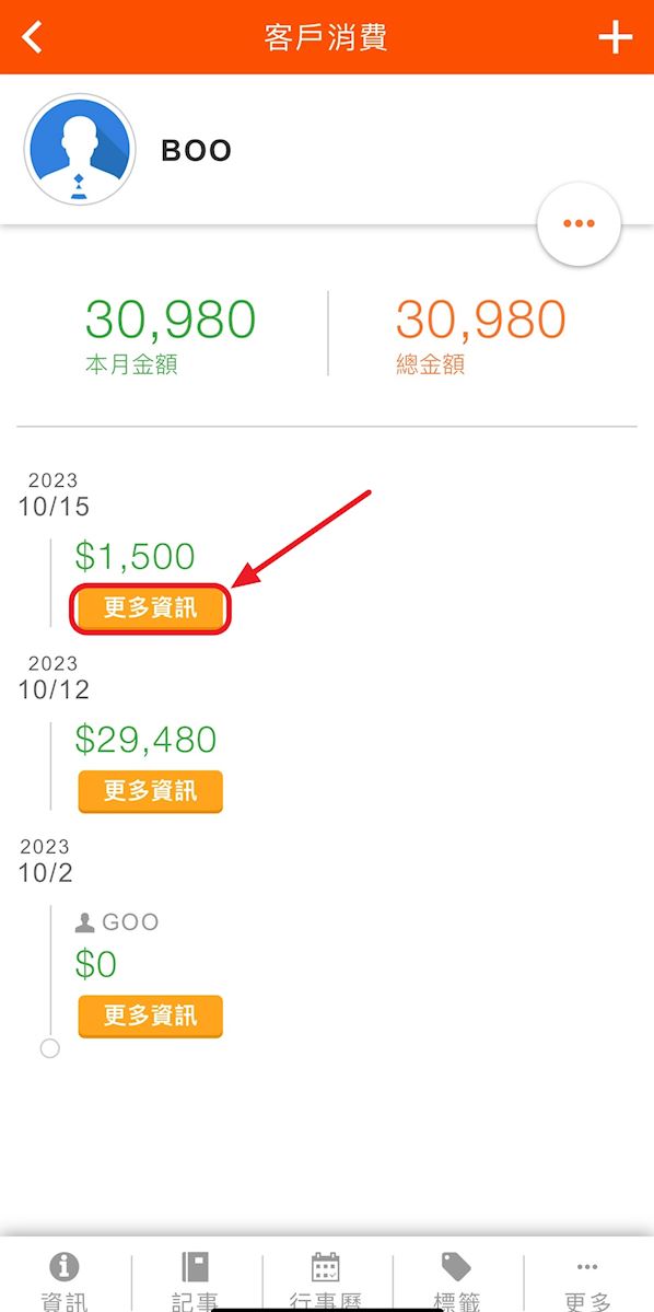2. 在客戶資料下方功能列表,點擊【更多>消費】.jpg)