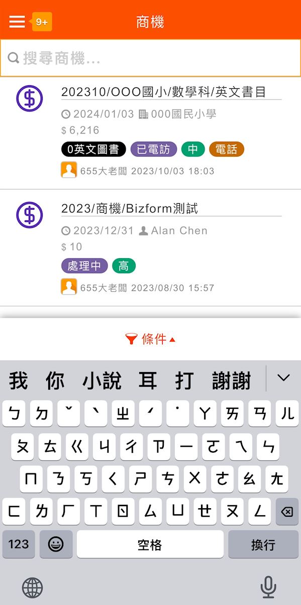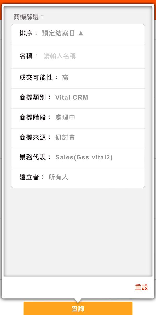 在商機功能中,於畫面上方使用名稱查詢,或展開下方查詢條件使用更豐富的篩選條件組合:.jpg)
