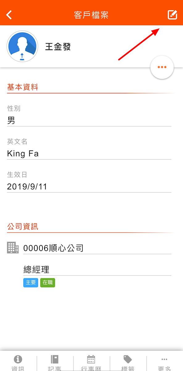 ※修改:選擇客戶檔案,進入客戶頁面後點擊右上角的鉛筆,即可進行修改。