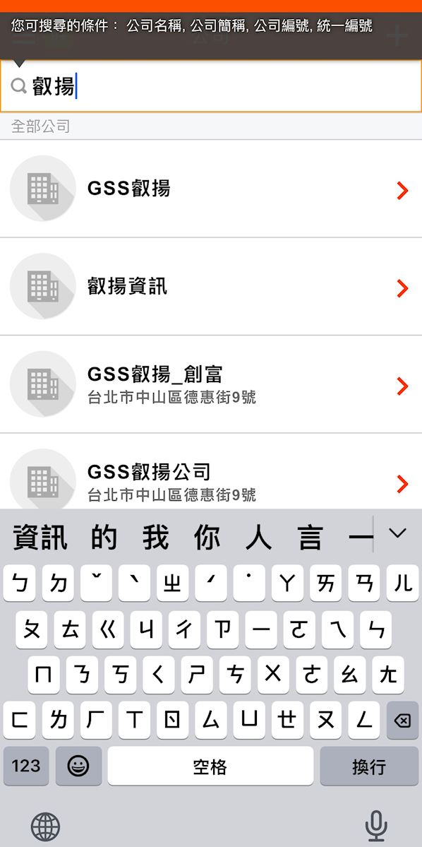 在公司列表上方的輸入框可以對公司名稱、公司簡稱、公司編號、統一編號進行關鍵字搜尋: .jpg)