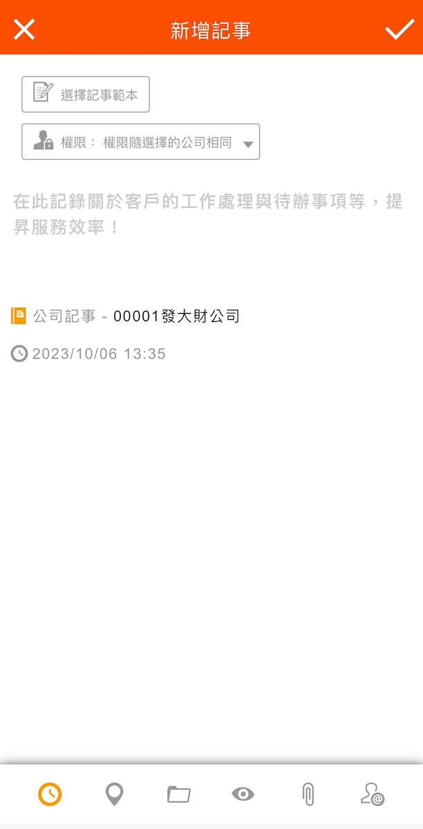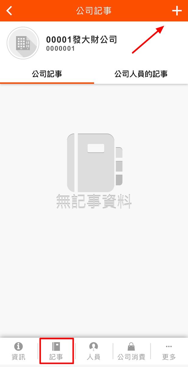 請在公司記事分頁中,點擊畫面右上的加號,即可新增屬於此公司的記事。