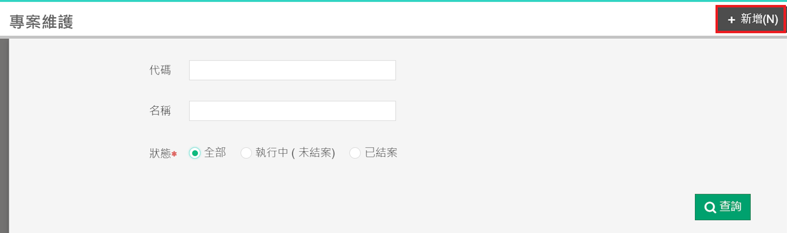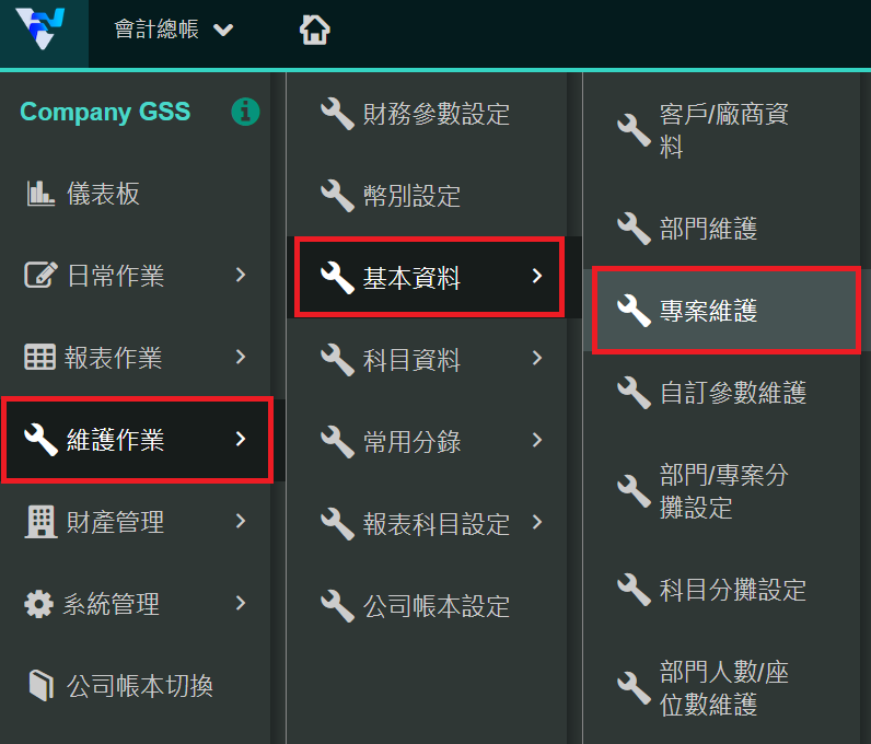 1.請依照下列路徑:【維護作業>基本資料>專案維護】進入頁面