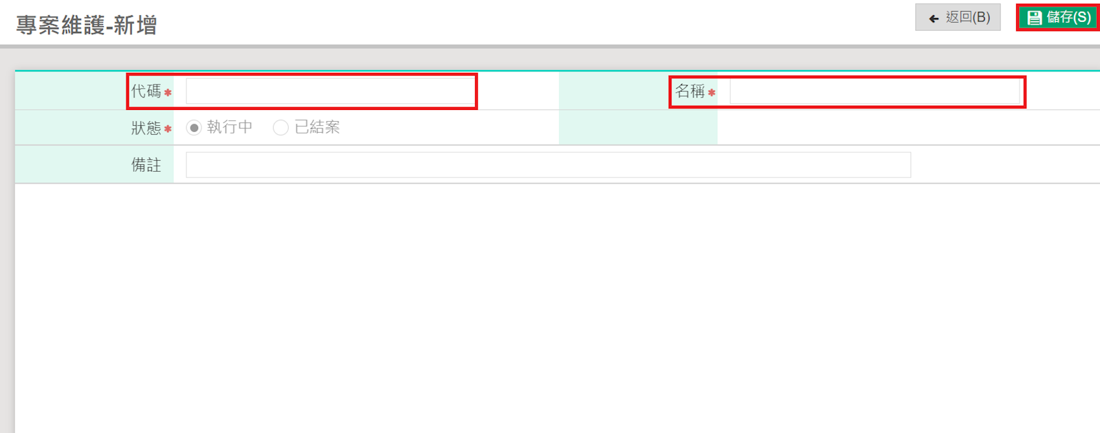 3.進入後,即可在此新增專案代碼及名稱,新增完畢後點選【儲存】
