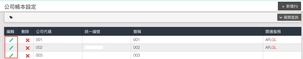 2. 選擇您要停用的帳本,點擊左方的編輯按鈕(鉛筆圖示)