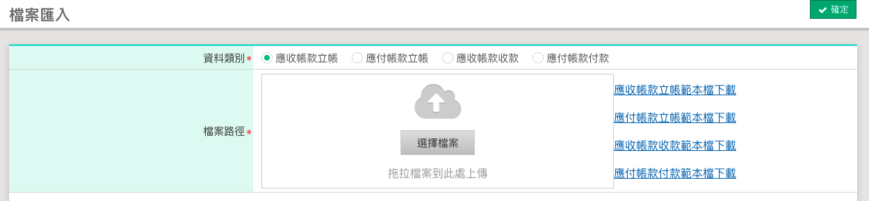 2. 您可下載範本檔,填入資料後逕行匯入。或是將您的前台系統的應收(付) 帳款資料做匯入。完成後請至【日常作業>應收帳款 or 應付帳款】即可查看匯入完成的資料。