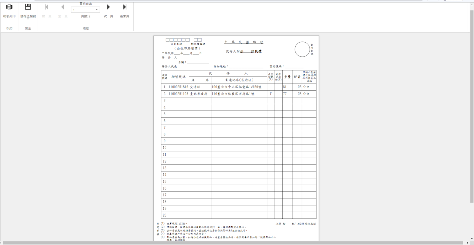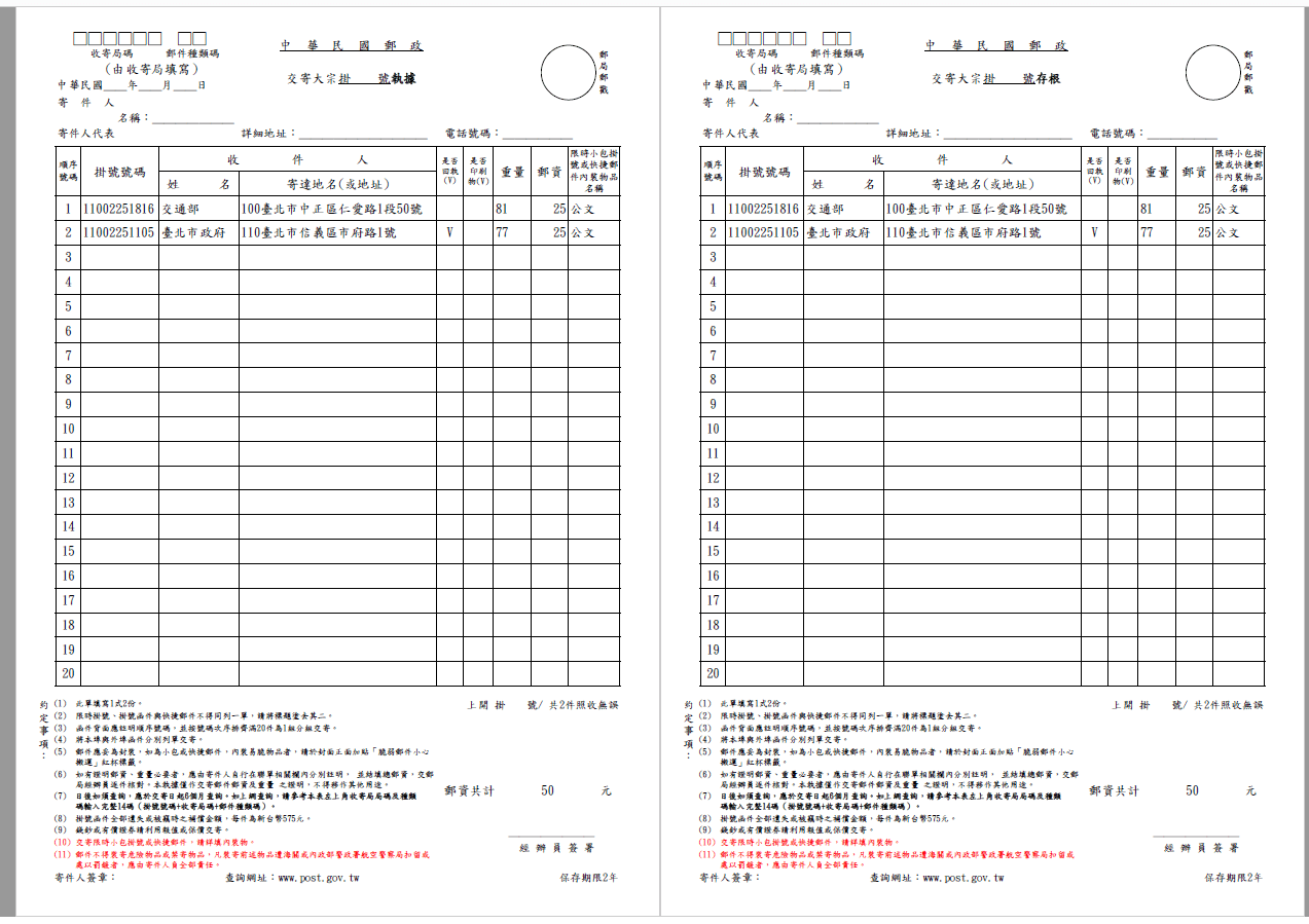大宗郵件掛號清單