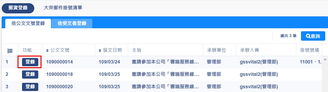 依公文文號登錄