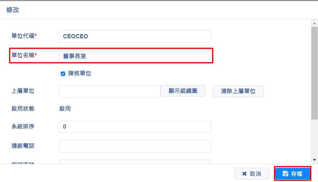 https://support.vitalyun.com/tw/vital-od/faq?catid=28&id=2365%3A%E5%A6%82%E4%BD%95%E4%BF%AE%E6%94%B9%E7%B5%84%E7%B9%94%E5%96%AE%E4%BD%8D%E7%9B%B8%E9%97%9C%E8%B3%87%E6%96%99-%E5%96%AE%E4%BD%8D%E5%90%8D%E7%A8%B1%E3%80%81%E5%96%AE%E4%BD%8D%E4%BB%A3%E7%A2%BC-%EF%BC%9F&view=article
