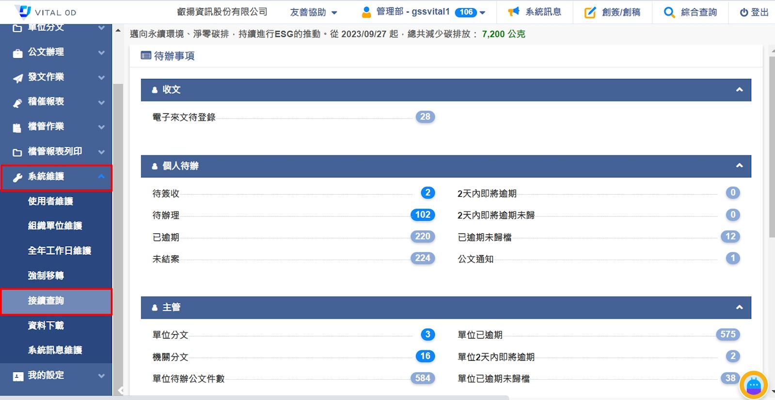 若有組織整併或停用時可將被停用單位的公文查詢權限設定給有權限查詢的人員。